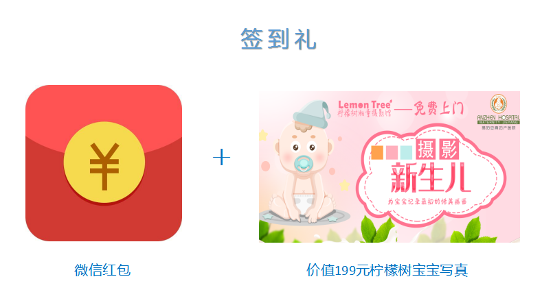 1、签到礼:2:30-3:30微信在线签到可获得签到红包和价值199元柠檬树新生儿写真拍摄